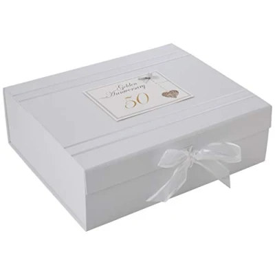 White Cotton Cards 50th Anniversary Sparkling Love Heart Large Keepsake Box (LLA50X)