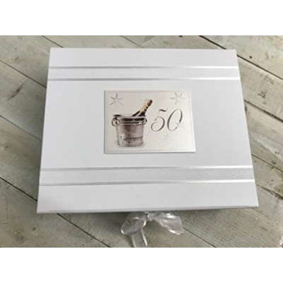White Cotton Cards 50th Birthday Keepsake Box, Large, Silver Champagne