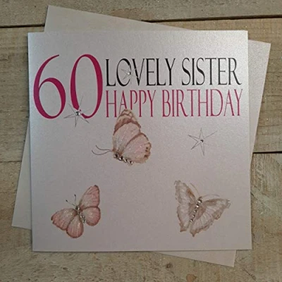 White Cotton Cards 60 Lovely Sister Happy, Handmade 60th Birthday Card (Neon, Butterflies)