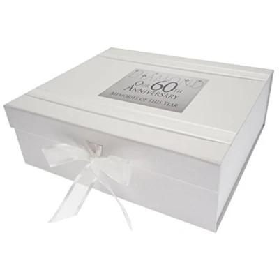Beautiful handmade 60th Diamond Anniversary Memories of This Year, Glitter & Words, Large Keepsake Box Large keepsake box with organza ribbon ties and magnetic seal Measures 27.2x32x11cm Hand finished with gorgeous diamantes and sparkling glitter The perfect gift for your special occasion