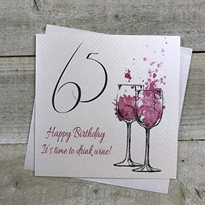 White Cotton Cards"65 Happy Birthday It's Time to Drink Wine!" Handmade 65th Card, SPA65,blackgrey