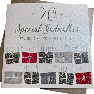 white cotton cards 70 Wishing you a Wonderful Godmother Handmade 70th Birthday Card, White, bdp70 Godm