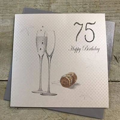 WHITE COTTON CARDS 75 Happy, Handmade 75th Birthday Card, Champagne/Hologram