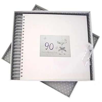 Beautiful handmade 90th Birthday Coupe glass card & Memory book Spiral bound allowing the book to expand and be filled with cards and other special memories Includes approximately 40 blank pages and presented in a White gift box with a lid Hand finished with gorgeous diamantes and sparkling glitter The perfect gift for your special occasion