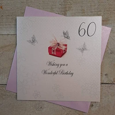 White COTTON CARDS Age 60 Handmade Birthday Card Present,
