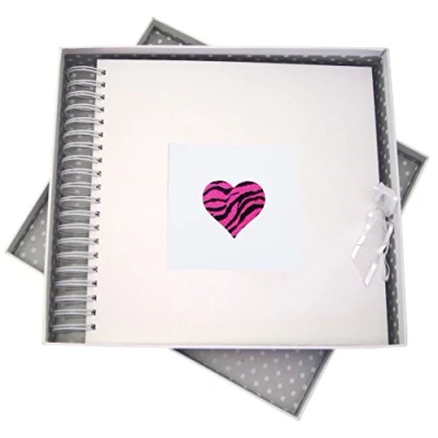 Beautiful handmade Alphabetics Pink Heart card & memory book Spiral bound allowing the book to expand and be filled with cards and other special memories Includes approximately 40 blank pages and presented in a white gift box with a lid A stylish patterned fabric motif printed onto a crisp white textured plaque, mounted onto a card & memory book The perfect gift for your special occasion