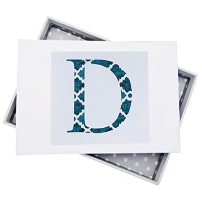 Beautiful handmade Alphabetic Initial D photo album Presented in a white gift box with a clear Perspex lid Includes 16 pockets to hold up to 32 photos A stylish patterned fabric motif printed onto a crisp white textured plaque, mounted onto an album The perfect gift for your special occasion