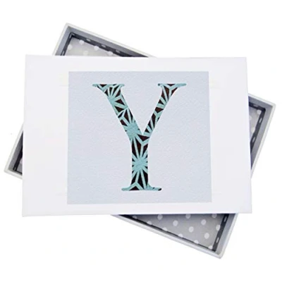 Beautiful handmade Alphabetic Initial Y photo album Presented in a white gift box with a clear Perspex lid Includes 16 pockets to hold up to 32 photos A stylish patterned fabric motif printed onto a crisp white textured plaque, mounted onto an album The perfect gift for your special occasion