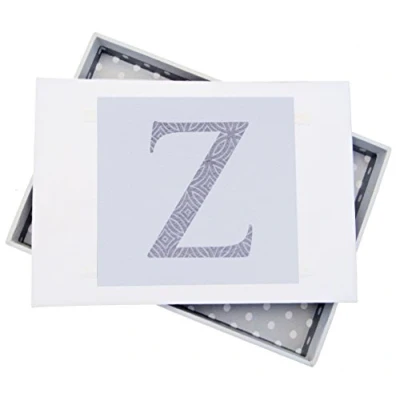 Beautiful handmade Alphabetic Initial Z photo album Presented in a white gift box with a clear Perspex lid Includes 16 pockets to hold up to 32 photos A stylish patterned fabric motif printed onto a crisp white textured plaque, mounted onto an album The perfect gift for your special occasion