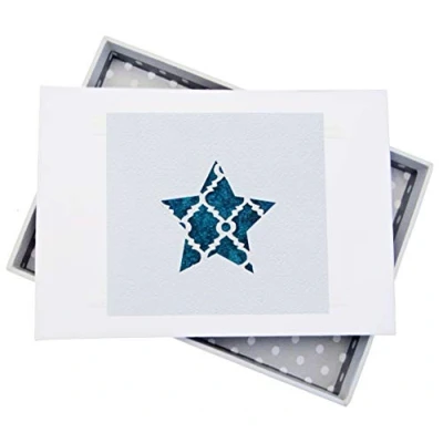 Beautiful handmade Alphabetic Teal Star photo album Presented in a white gift box with a clear Perspex lid Includes 16 pockets to hold up to 32 photos A stylish patterned fabric motif printed onto a crisp white textured plaque, mounted onto an album The perfect gift for your special occasion