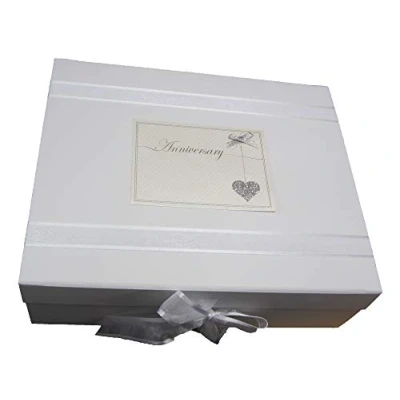 WHITE COTTON CARDS"Anniversary" Sparkling Silver Heart Wedding Anniversary Large Keepsake Box LLA X