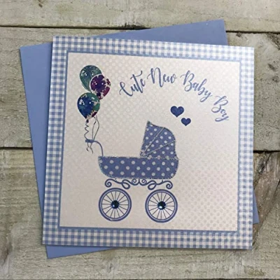 white cotton cards B SS243 Handmade New Baby Card Blue