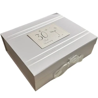 White COTTON CARDS BA30LK 30th Pearl Anniversary, Large Keepsake Box, Champagne Glasses 27.2x32x11 cm