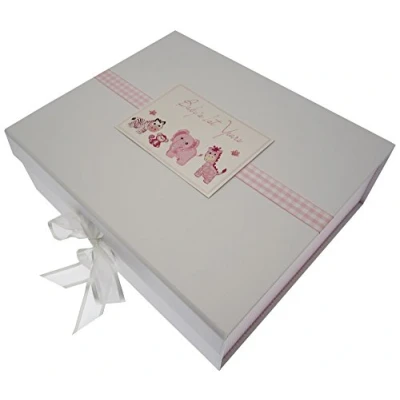 Beautiful handmade Baby's First Years Pink Toys Large Keepsake Box Large keepsake box with organza ribbon ties and magnetic seal Measures 27.2x32x11cm Hand finished with gorgeous diamantes and sparkling glitter The perfect gift for your special occasion