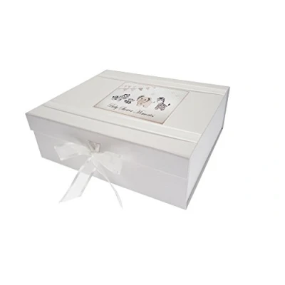 White Cotton Cards Baby Shower Memories, Large Keepsake Box, Silver Toys, Animals, Board, 27.2 x 32 11 cm