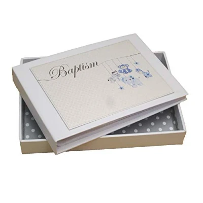 White Cotton Cards Baptism Mini Photo Album, Blue Toy Animals (HTBB1T)
