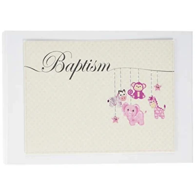 White Cotton Cards Baptism Mini Photo Album, Pink Toy Animals (HTBP1T)