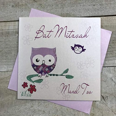 white cotton cards Bat Mitzvah Mazel Tov Girls Handmade Jewish Card, Owl, JE140