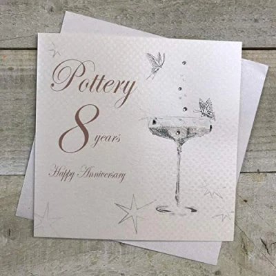 White COTTON CARDS BD108C Coupe Glass Happy Anniversary 'Pottery' 8 Years Handmade Card,