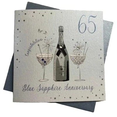 White Cotton Cards BD165C "Coupe Glass, Blue Sapphire 65 Years Happy Anniversary" Handmade 65th Anniversary Card, 16cm x 16xm