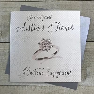 White Cotton Cards BD75"to A Special Sister and Fiancé On Your Engagement" Handmade Engagement Card,silverblackgrey