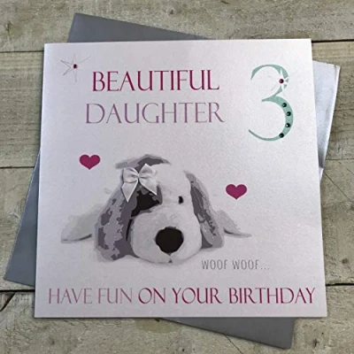 WHITE COTTON CARDS Beautiful Daughter 3 Have Fun, Handmade 3rd Birthday Card, Code XN214 D3, Puppy