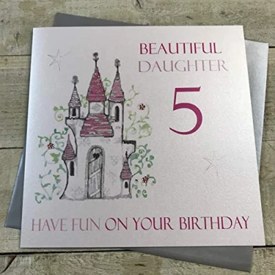 WHITE COTTON CARDS Beautiful Daughter 5 Have Fun, Handmade 5th Birthday Card, Code XND5, Princess Castle