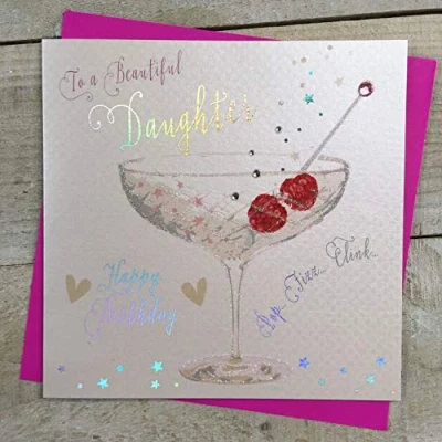 White Cotton Cards Beautiful Daughter Birthday Handmade Card Champagne Coupe Glass B114