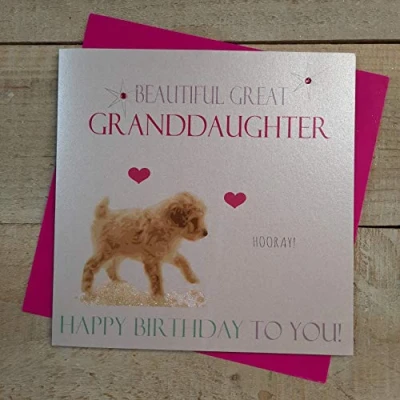 WHITE COTTON CARDS Beautiful Granddaughter Happy Handmade Birthday Card (Neon, Puppy)