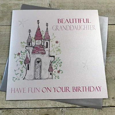 WHITE COTTON CARDS Beautiful Granddaughter Have Fun, Handmade Large Birthday Card, (Code XN86, Princess Castle)