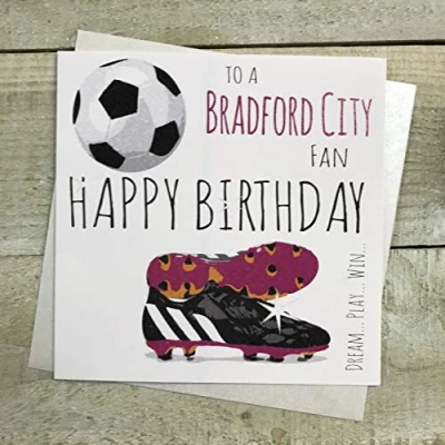 WHITE COTTON CARDS Bradford City Bantoms FC Football Club Fan Birthday Card BOOTS & BALL DESIGN (24)
