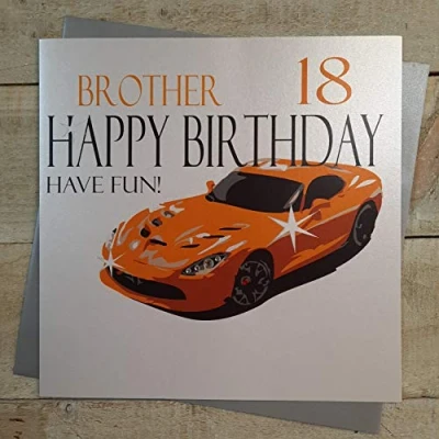 WHITE COTTON CARDS Brother 18 Happy Fun Handmade Large 18th Birthday Card (Orange,Sports Car)