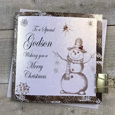 WHITE COTTON CARDS F5 GS""Special Godson"" Handmade Christmas Card"