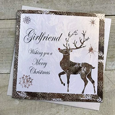 White Cotton Cards XF2 GF Large "to My Girlfriend at Christmas" Handmade Christmas Card