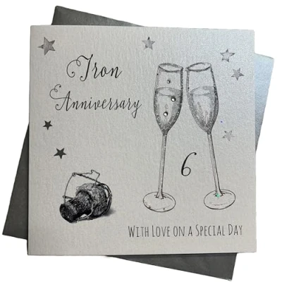 WHITE COTTON CARDS Champagne Glasses Iron Handmade 6th Anniversary Card, White, WA6,16cm x 16cm