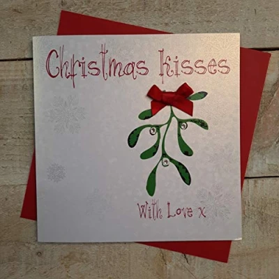 WHITE COTTON CARDS Chrismas Kisses with Love x Handmade Christmas Card (Mistletoe)