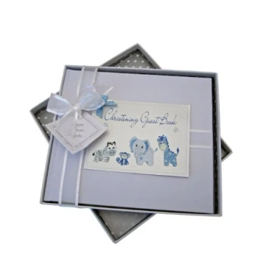 Beautiful Christening Guest Book Packaged in a Solid Top Quality Box with Lid for you to keep your Album safely stored Finished with Dimontes and Glitter Perfect Gift for a special Occasion Measures Approx 22cm x 19cm