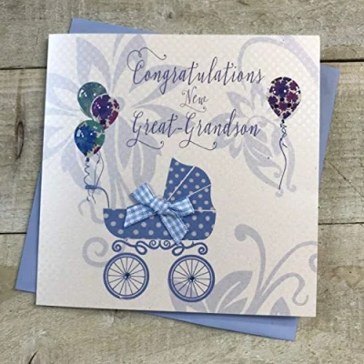white cotton cards Congratulation Handmade New Grandson Card (Blue Rattle)
