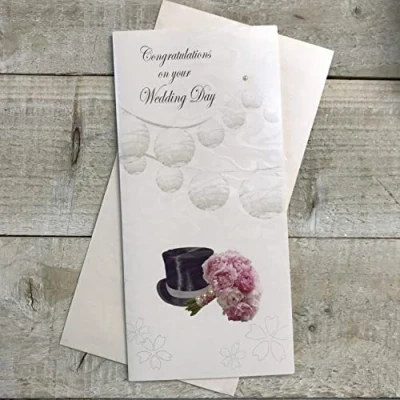White Cotton Cards Congratulations On Your Wedding Day Money Wallet (Hat & Bouquet)