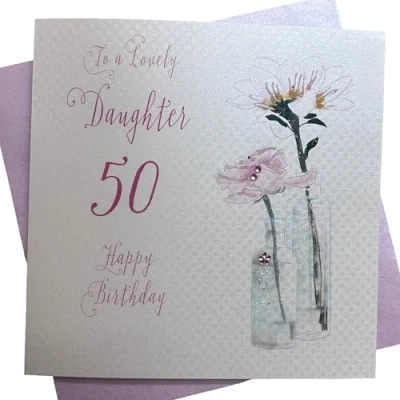 white cotton cards Dandelion, Happy Lovely Daughter 50" Handmade 50th Birthday Card, White, bd62 50