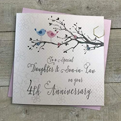 White Cotton Cards Daughter & Son in Law 4th Wedding Anniversary Card Forth Fruit Birds and Tree branch PD193 4,16cm x 16cm
