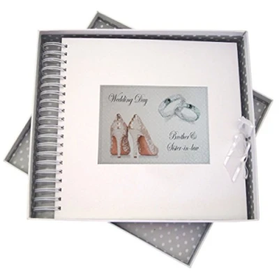 White Cotton Cards Day, Brother & Sister in law Card Memory Book, Shoes and Wedding Rings design, Board, 27 x 30 4 cm