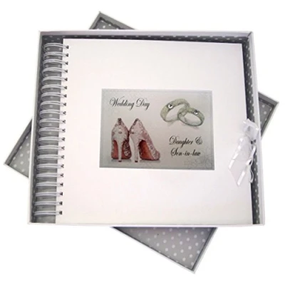 White Cotton Cards Day, Daughter& Son in law Card & Memort Book, Shoes and Wedding Rings design, Board, 27 x 30 4 cm