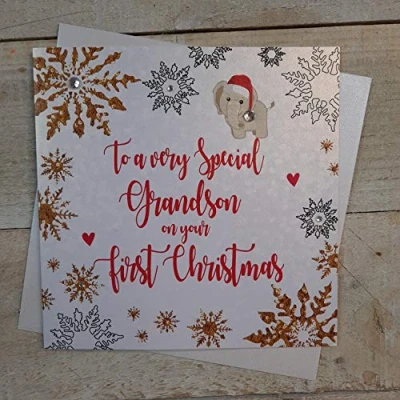White Cotton Cards F2 GSFC"to a Very Special Grandson on Your First Christmas" Handmade Christmas Card