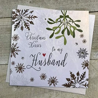 WHITE COTTON CARDS F2 H""to My Husband"" Handmade Christmas Card",greypeachblackgreenyellow