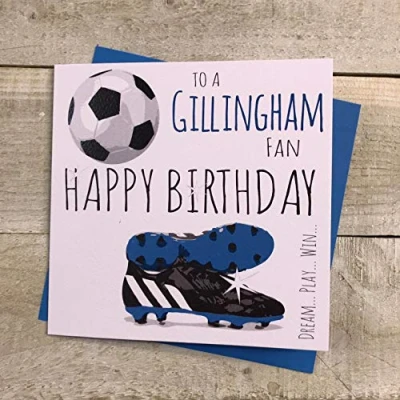 WHITE COTTON CARDS Gillingham FC Football Club Fan Birthday Card BOOTS & BALL DESIGN (FFP63)