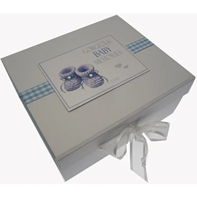 White Cotton Cards Gorgeous Baby Memories, Small Keepsake Box, Blue Booties