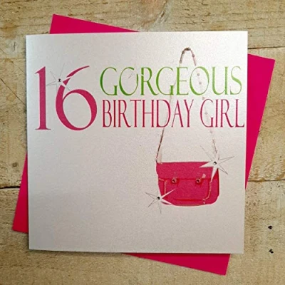 WHITE COTTON CARDS Gorgeous Girl 16, Handmade 16th Birthday Card, Code NA16 (Neon, Handbag)