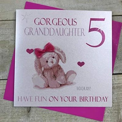 WHITE COTTON CARDS Gorgeous Granddaughter 5, Pink Bunny Handmade Age 5 Birthday Card, Ngd5