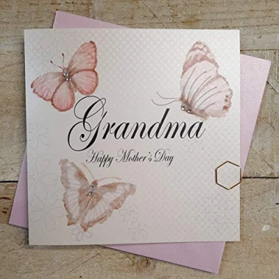 WHITE COTTON CARDS Grandma Happy Handmade Mother's Day Card with Vintage Butterflies, MP11